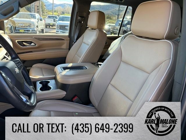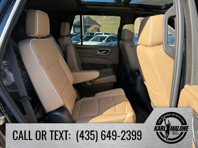 Recent Arrival! 4WD, Jet Black/Maple Sugar Leather, 10 Speakers, 15 Diagonal Multi-Color Head-Up Display, 1st & 2nd Row Color-Keyed Carpeted Floor Mats, 2-Speed Active Electronic AutoTrac Transfer Case, 20 x 9 Polished Aluminum Wheels, 3.23 Rear Axle Ratio, 3rd Row 60/40 Power-Folding Split-Bench Seat, 3rd row seats: split-bench, 4-Wheel Disc Brakes, ABS brakes, Adaptive suspension, Air Conditioning, Alloy wheels, AM/FM radio: SiriusXM with 360L, Apple CarPlay/Android Auto, Auto High-beam Headlights, Auto-dimming door mirrors, Auto-Dimming Inside Rear-View Mirror, Auto-dimming Rear-View mirror, Auto-leveling suspension, Automatic temperature control, Black Grille w/Chevrolet Lettering (LPO) (DISC), Bose 10-Speaker Centerpoint Surround Audio Sys Ft, Brake assist, Bright Front & Rear Door Sill Plates, Bumpers: body-color, Chrome Door Handles w/Body-Color Strip, Chrome Mirror Caps, Color-Keyed Carpeting Floor Covering, Compass, Console Mounted Safe (LPO), Delay-off headlights, Driver & Front Outboard Passenger Airbags, Driver door bin, Driver vanity mirror, Dual Exhaust System, Dual front impact airbags, Dual front side impact airbags, Dual-Pane Power Panoramic Sunroof, Electronic Stability Control, Emergency communication system: OnStar and Chevrolet connected services capable, Enhanced Display & Alert Package, Enhanced Driver Information Center, Floor Console, Floor Console w/Storage Area, Four wheel independent suspension, Front anti-roll bar, Front Bucket Seats, Front Center Armrest, Front dual zone A/C, Front High-Back Reclining Bucket Seats, Front reading lights, Fully automatic headlights, Garage door transmitter, Hands-Free Rear Power Programmable Liftgate, HD Surround Vision, Heated & Ventilated Driver & Front Passenger Seats, Heated 2nd Row Outboard Seats, Heated door mirrors, Heated Driver & Front Passenger Seats, Heated front seats, Heated rear seats, Heated Steering Wheel, Heated steering wheel, Hill Descent Control, Illuminated entry, Infotainment Display, Inside Rearview Auto-Dimming Rear Camera Mirror, Lane Change Alert w/Side Blind Zone Alert, LED Daytime Running Lamps, License Plate Front Mounting Package, Low tire pressure warning, Magnetic Ride Control Suspension, Memory seat, Memory Settings, Navigation System, Not Equip w/Ventilated Seat Cushion Blower Motor, Not Equipped w/4-Way Driver & Fr Pass Pwr Lumbar, Occupant sensing airbag, Outside Heated Power-Adjustable Mirrors, Outside temperature display, Overhead airbag, Overhead console, Panic alarm, Passenger door bin, Passenger vanity mirror, Perforated Leather Seat Trim, Power door mirrors, Power driver seat, Power Liftgate, Power passenger seat, Power Release 2nd Row Bucket Seats, Power steering, Power Tilt & Telescopic Steering Column, Power windows, Power-Retractable Assist Steps, Preferred Equipment Group 1LZ, Premium audio system: Chevrolet Infotainment 3 Premium, Radio: Chevrolet Infotainment 3 Premium System, Rain sensing wipers, Rear air conditioning, Rear anti-roll bar, Rear Camera Mirror Washer, Rear Cross Traffic Alert, Rear Pedestrian Alert, Rear reading lights, Rear window defroster, Rear window wiper, Remote keyless entry, Remote Start, Roof rack: rails only, Safety Alert Seat, Security system, SiriusXM Radio w/360L, Speed control, Speed-sensing steering, Split folding rear seat, Spoiler, Steering wheel memory, Steering wheel mounted audio controls, Tachometer, Telescoping steering wheel, Tilt steering wheel, Traction control, Trip computer, Turn signal indicator mirrors, Universal Home Remote, Variably intermittent wipers, Ventilated front seats, Voltmeter, Wheels: 22 Multi-Spoke Gloss Black (LPO) (SRV), Wheels: 22 x 9 Steel Interim (LPO), Wireless Charging, Wrapped Steering Wheel, 4WD, Jet Black/Maple Sugar Leather.