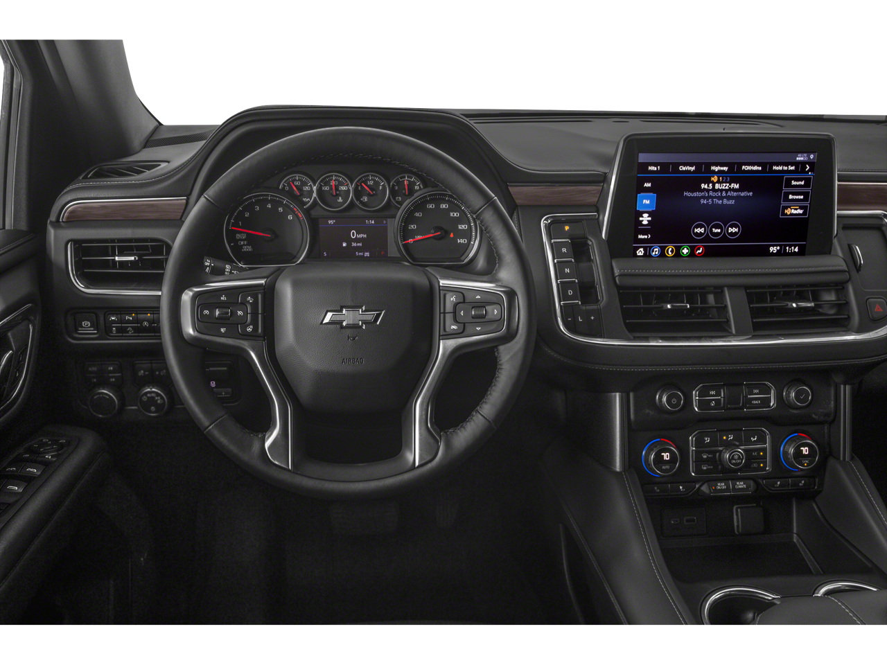 10-Way Power Driver & Passenger Seat Adjusters, 1st & 2nd Row Color-Keyed Carpeted Floor Mats, 2-Speed Active Electronic AutoTrac Transfer Case, 2nd Row Manual Bucket Seats, 3.23 Rear Axle Ratio, 3rd row seats: split-bench, 4-Wheel Disc Brakes, 9 Speakers, ABS brakes, Air Conditioning, Alloy wheels, AM/FM radio: SiriusXM with 360L, Apple CarPlay/Android Auto, Auto High-beam Headlights, Auto-Dimming Inside Rear-View Mirror, Auto-dimming Rear-View mirror, Automatic temperature control, Black Tubular Assist Steps, Bose 9-Speaker Stereo Audio System Feature, Brake assist, Bright Front & Rear Door Sill Plates, Bumpers: body-color, Color-Keyed Carpeting Floor Covering, Compass, Delay-off headlights, Driver & Front Outboard Passenger Airbags, Driver door bin, Driver vanity mirror, Dual front impact airbags, Dual front side impact airbags, Dual-Pane Power Panoramic Sunroof, Electronic Stability Control, Emergency communication system: OnStar and Chevrolet connected services capable, Enhanced Driver Information Center, Floor Console w/Storage Area, Four wheel independent suspension, Front anti-roll bar, Front Bucket Seats, Front Center Armrest, Front dual zone A/C, Front High-Approach Angle Fascia, Front High-Back Reclining Bucket Seats, Front reading lights, Fully automatic headlights, Garage door transmitter, Hands-Free Rear Power Programmable Liftgate, Heated door mirrors, Heated Driver & Front Passenger Seats, Heated front seats, Hill Descent Control, Illuminated entry, Infotainment Display, Leather-Appointed Seat Trim, LED Daytime Running Lamps, License Plate Front Mounting Package, Low tire pressure warning, Memory seat, Memory Settings for Driver, Navigation System, Occupant sensing airbag, Outside temperature display, Overhead airbag, Overhead console, Panic alarm, Passenger door bin, Passenger vanity mirror, Power door mirrors, Power driver seat, Power Liftgate, Power passenger seat, Power steering, Power windows, Preferred Equipment Group 2Z7, Premium audio system: Chevrolet Infotainment 3 Premium, Premium Smooth Ride Suspension, Radio: Chevrolet Infotainment 3 Premium System, Rain sensing wipers, Rear air conditioning, Rear anti-roll bar, Rear reading lights, Rear seat center armrest, Rear window defroster, Rear window wiper, Red Horizontal-Mounted Recovery Hooks, Remote keyless entry, Remote Start, Roof rack: rails only, Security system, SiriusXM Radio w/360L, Speed control, Speed-sensing steering, Split folding rear seat, Spoiler, Steering wheel mounted audio controls, Tachometer, Telescoping steering wheel, Tilt steering wheel, Traction control, Trip computer, Universal Home Remote, Variably intermittent wipers, Voltmeter, Wheels: 20 x 9 Machined Aluminum, Wireless Charging, Wrapped Steering Wheel.