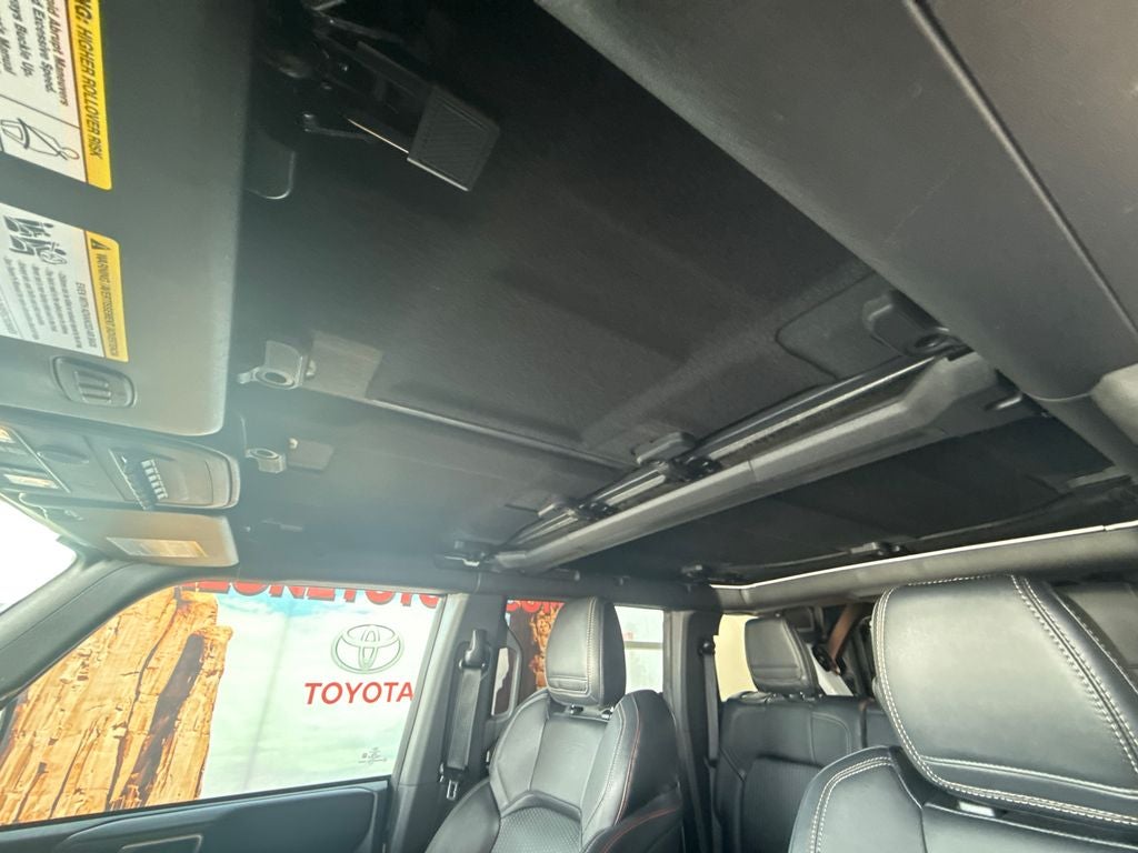 10 Speakers w/Subwoofer, 2 Smart Charging USB Ports In Dashboard, 4-Wheel Disc Brakes, 4.7 Axle Ratio, 7 Speakers, ABS brakes, Adaptive Cruise Control, Air Conditioning, Alloy wheels, AM/FM radio: SiriusXM with 360L, AM/FM Stereo, Auto High-beam Headlights, Auto-dimming Rear-View mirror, Automatic temperature control, Brake assist, Compass, Connected Built-In Navigation, Connected Navigation, Convertible HardTop, Convertible roof lining, Delay-off headlights, Driver door bin, Driver vanity mirror, Dual front impact airbags, Dual front side impact airbags, Electronic Stability Control, Emergency communication system: 911 Assist, Equipment Group 374A Lux Package, Evasive Steering Assist, Exterior Parking Camera Rear, Front anti-roll bar, Front Bucket Seats, Front Center Armrest, Front dual zone A/C, Front fog lights, Front reading lights, Front Row Top Panels & Door Storage Bags, Front wheel independent suspension, Fully automatic headlights, Glass rear window, Hard Top Sound Deadening Headliner (DISC), Heated door mirrors, Heated front seats, Heated Steering Wheel, Illuminated entry, Integrated roll-over protection, Interior Carbon Fiber Pack 6, Keyless Entry Keypad, Leather Shift Knob, Low tire pressure warning, Lux Package, Marine Grade Vinyl Bucket Seats, Navigation system: Connected Navigation, Occupant sensing airbag, Outside temperature display, Overhead airbag, Overhead console, Panic alarm, Passenger door bin, Passenger vanity mirror, Power door mirrors, Power steering, Power windows, Radio data system, Radio: B&O Sound System by Bang & Olufsen, Rear anti-roll bar, Rear seat center armrest, Rear window defroster, Rear window wiper, Remote keyless entry, Second Row Panel Roof Bag Storage (DIO), Security system, SiriusXM Radio w/360L, Speed control, Split folding rear seat, Steering wheel mounted audio controls, SYNC 4, Tachometer, Telescoping steering wheel, Tilt steering wheel, Traction control, Trip computer, Turn signal indicator mirrors, Universal Garage Door Opener, Upgraded Raptor Graphic, Variably intermittent wipers, Voltmeter, Wheel Lock Kit (DIO), Wheels: 17 Black High Gloss-Painted Aluminum, Wheels: 17 Dark Carbonized Gray Alloy Painted, Wireless Charging Pad.