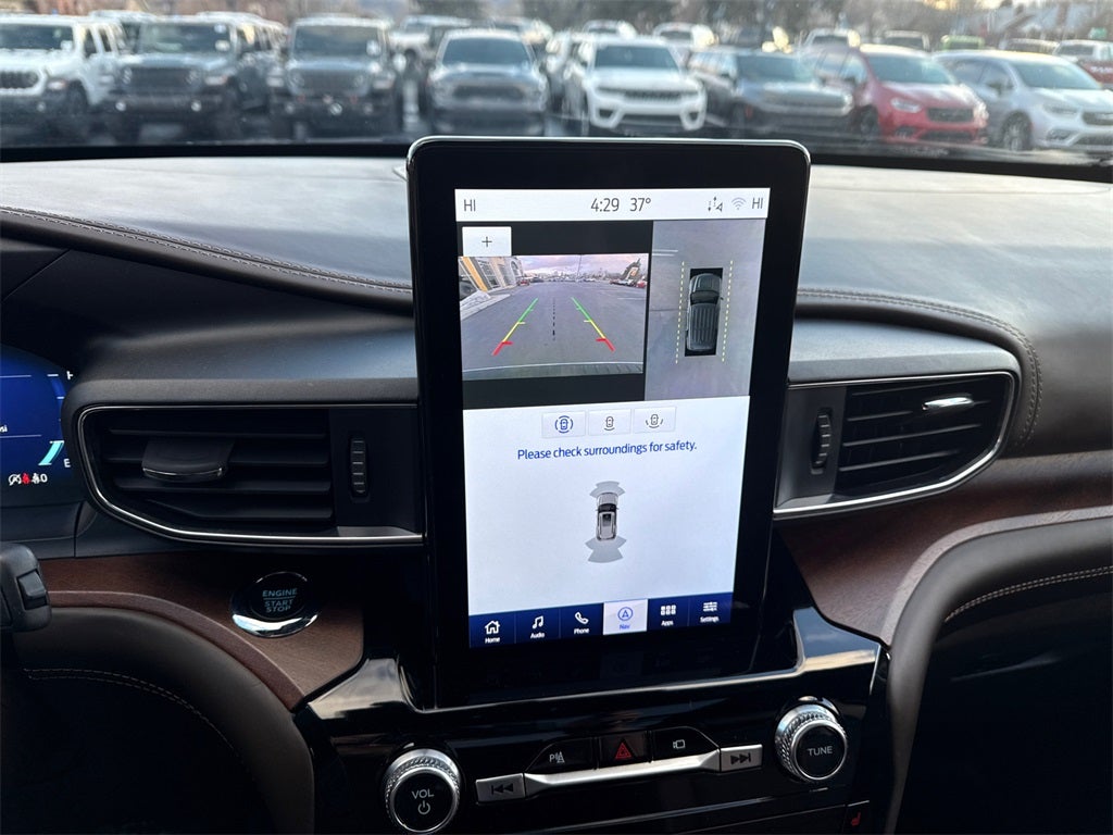 4WD, 10.1 LCD Capacitive Portrait Touchscreen, 12 Speakers, 2 Additional Speakers, 3.31 Non-Limited-Slip Rear Axle Ratio, 3rd row seats: bench, 4-Wheel Disc Brakes, 4G LTE Wi-Fi Hotspot Credit, ABS brakes, Air Conditioning, Alloy wheels, AM/FM radio: SiriusXM, Auto High-beam Headlights, Auto-dimming door mirrors, Auto-dimming Rear-View mirror, Automatic temperature control, Brake assist, Bumpers: body-color, Cargo Area Management System, Class IV Trailer Tow Package, Compass, Delay-off headlights, Driver door bin, Driver vanity mirror, Dual front impact airbags, Dual front side impact airbags, Electronic Stability Control, Emergency communication system: SYNC 3 911 Assist, Equipment Group 701A, Exterior Parking Camera Rear, FordPass Connect, Four wheel independent suspension, Front & Second Row Floor Liners (16B), Front anti-roll bar, Front Bucket Seats, Front Center Armrest, Front dual zone A/C, Front fog lights, Front reading lights, Fully automatic headlights, Garage door transmitter, Genuine wood dashboard insert, Heated door mirrors, Heated front seats, Heated rear seats, Heated steering wheel, Illuminated entry, Knee airbag, Leather steering wheel, Low tire pressure warning, Memory seat, Mesa Del Rio Lthr Htd/Vent Sport Capt's Chairs, Navigation System, Occupant sensing airbag, Outside temperature display, Overhead airbag, Overhead console, Panic alarm, Passenger door bin, Passenger vanity mirror, Power door mirrors, Power driver seat, Power Liftgate, Power passenger seat, Power steering, Power windows, Radio data system, Radio: B&O Sound System by Bang & Olufsen, Rain sensing wipers, Rear air conditioning, Rear anti-roll bar, Rear reading lights, Rear window defroster, Rear window wiper, Remote keyless entry, Roof rack: rails only, Roof-Rail Crossbars, Security system, Speed control, Speed-sensing steering, Speed-Sensitive Wipers, Split folding rear seat, Spoiler, Steering wheel memory, Steering wheel mounted audio controls, SYNC 3 Communications & Entertainment System, SYNC 3/Apple CarPlay/Android Auto, Tachometer, Technology Package, Telescoping steering wheel, Tilt steering wheel, Traction control, Trip computer, Turn signal indicator mirrors, Twin Panel Moonroof, Variably intermittent wipers, Ventilated front seats, Voice-Activated Touchscreen Navigation System, Wheels: 20 10-Spoke Aluminum w/KR Center Cap, 4WD.