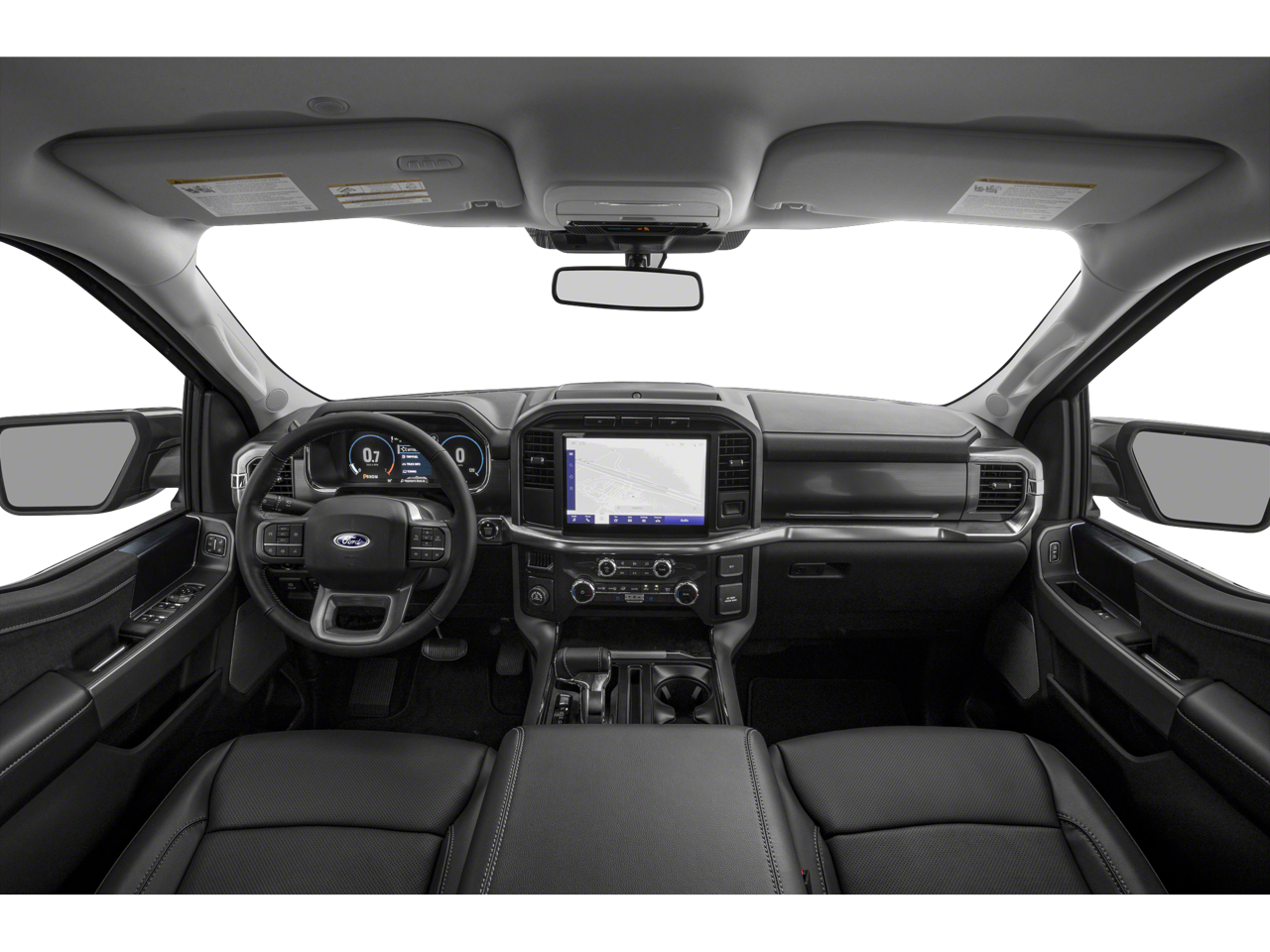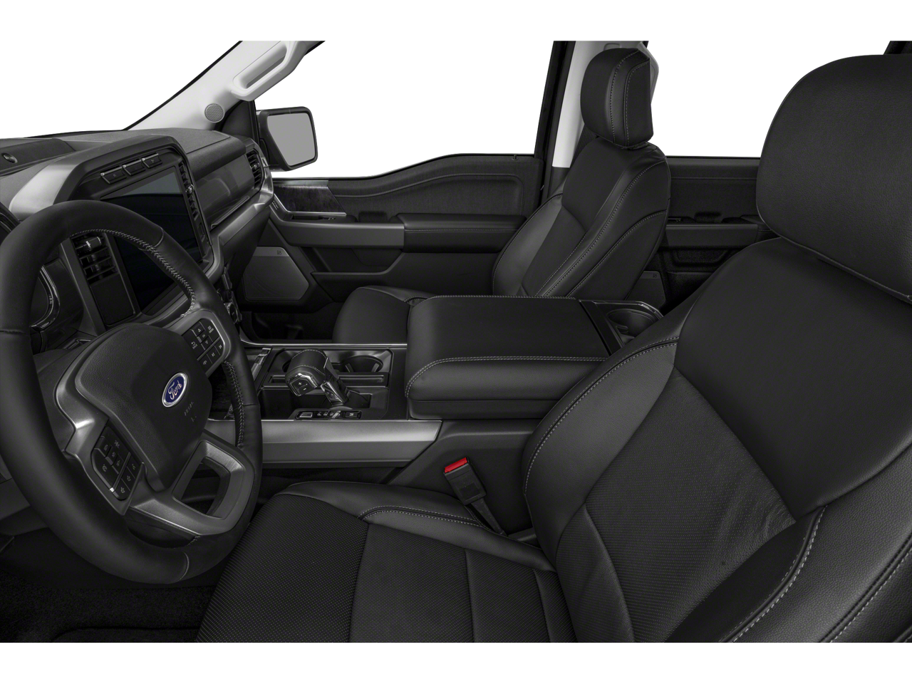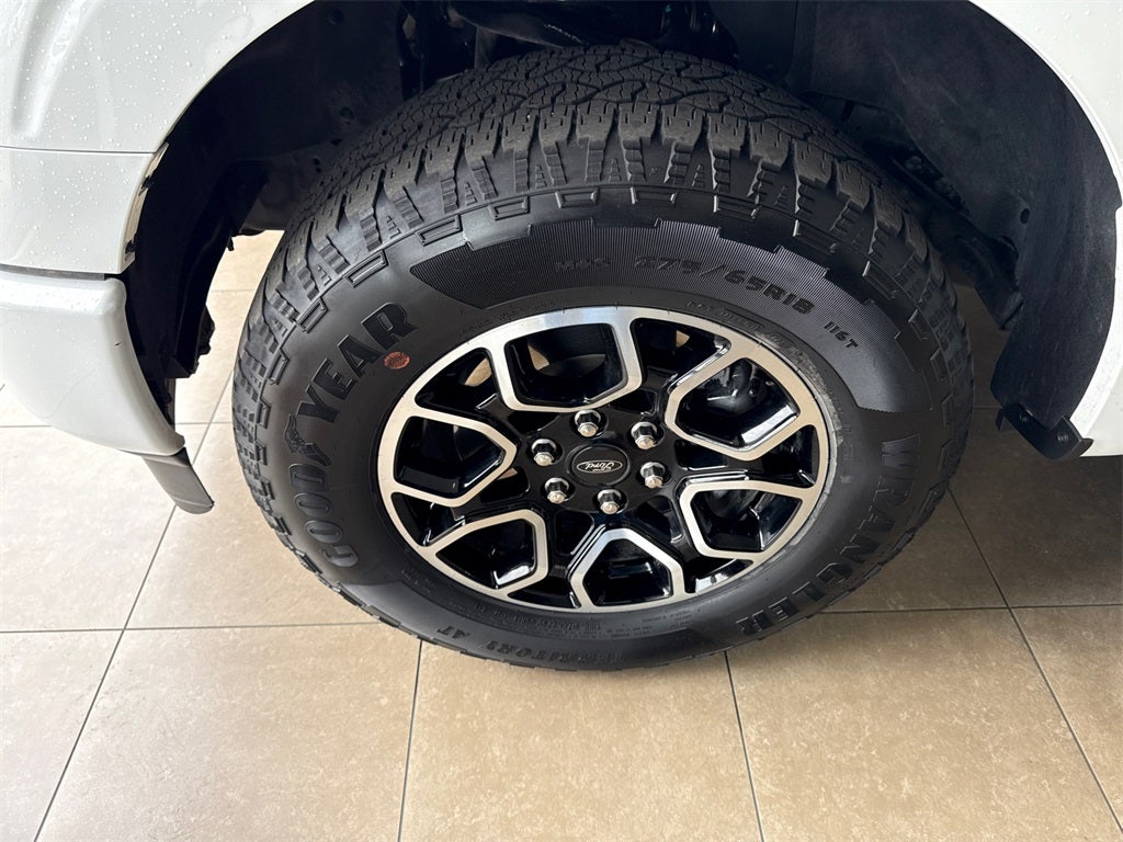 4WD, 3.31 Axle Ratio, 360 Degree Camera, 4-Wheel Disc Brakes, 8 Speakers, ABS brakes, Accent-Color Angular Step Bars, Adjustable pedals, Air Conditioning, Alloy wheels, AM/FM radio: SiriusXM with 360L, Auto High-beam Headlights, Auto-dimming door mirrors, Auto-dimming Rear-View mirror, Automatic temperature control, Body-Color Front & Rear Bumpers, Box Side Decals, Brake assist, Bumpers: chrome, Center High-Mounted Stop Lamp CHMSL Camera Removal, Chrome Single-Tip Exhaust, Chrome wheels, Class IV Trailer Hitch Receiver, Compass, Connected Built-In Navigation, Dark 2-Bar & 1 Minor Bar Style Grille, Delay-off headlights, Driver door bin, Driver vanity mirror, Dual front impact airbags, Dual front side impact airbags, Electronic Stability Control, Emergency communication system: SYNC 4 911 Assist, Equipment Group 501A Standard, Evasive Steering Assist, Extended Range 36 Gallon Fuel Tank, Exterior Parking Camera Rear, Ford Co-Pilot360 Assist 2.0, Front anti-roll bar, Front Bucket Seats, Front Center Armrest, Front dual zone A/C, Front fog lights, Front reading lights, Front wheel independent suspension, Fully automatic headlights, Garage door transmitter, Heated door mirrors, Heated front seats, Heated steering wheel, Illuminated entry, Inclination/Intrusion Sensor Removal, Integrated Trailer Brake Controller, Intelligent Adaptive Cruise Control w/Stop & Go, Intersection Assist, Lariat Sport Appearance Package, Leather-Trimmed Bucket Seats, LED Sideview Mirror Spotlights, Low tire pressure warning, Memory seat, Occupant sensing airbag, Outside temperature display, Overhead airbag, Overhead console, Panic alarm, Passenger door bin, Passenger vanity mirror, Pedal memory, Power door mirrors, Power driver seat, Power passenger seat, Power steering, Power windows, Pro Trailer Backup Assist & Pro Trailer Hitch Assist, Radio data system, Radio: B&O Sound System by Bang & Olufsen, Rear reading lights, Rear seat center armrest, Rear step bumper, Rear window defroster, Remote keyless entry, Security system, Speed control, Speed Sign Recognition, Speed-sensing steering, Split folding rear seat, Steering wheel mounted audio controls, SYNC 4 w/Enhanced Voice Recognition, Tachometer, Telescoping steering wheel, Tilt steering wheel, Traction control, Trailer Tow Package, Tray Style Floor Liner, Trip computer, Turn signal indicator mirrors, Variably intermittent wipers, Ventilated front seats, Voltmeter, Wheels: 18 6-Spoke Machined Aluminum, Wheels: 18 Chrome-Like PVD, 4WD.