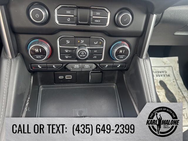 The exterior is highlighted by black roof rack cross rails, tubular assist steps, and a dual-pane power panoramic sunroof. Inside, the Suburban offers leather-appointed seating, a navigation system, heated front seats, and a hands-free rear power programmable liftgate. Additional conveniences include remote start, keyless entry, and power-adjustable mirrors.