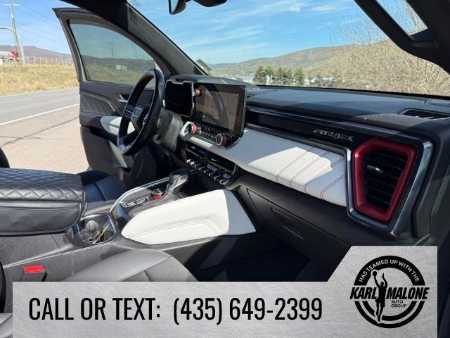 Recent Arrival! 4WD, 120-Volt Bed Mounted Power Outlet, 1st & 2nd Rows All-Weather Floor Liner (LPO), 2 1st Row USB Charge/Data Ports, 2 Rear USB Ports in Center Console (Charge-Only), 220 Amps Alternator, 3.42 Rear Axle Ratio, 4-Wheel Disc Brakes, 6-Way Power Passenger Seat Adjuster, 7 Speakers, 8-Way Power Driver Seat Adjuster, ABS brakes, Accessory Power Distribution Box (LPO), Accessory Switch Kit (LPO), Adaptive Cruise Control, AEV Stamped-Steel Front Bumper, AEV Stamped-Steel Rear Bumper, Air Conditioning, Alloy wheels, AM/FM radio, Apple CarPlay/Android Auto, AT4X AEV Edition, Auto High-beam Headlights, Auto-dimming Rear-View mirror, Automatic Emergency Braking, Automatic Stop/Start, Automatic temperature control, Brake assist, Bumpers: body-color, Canyon Pro Safety, Compass, Delay-off headlights, Driver & Front Passenger Illuminated Visors, Driver & Front Passenger Ventilated Seats, Driver door bin, Driver Memory, Driver Mode Selector, Driver Seatback Map Pocket, Driver vanity mirror, Driver-Selectable Full-Locking Front Differential, Driver-Selectable Full-Locking Rear Differential, Dual front impact airbags, Dual front side impact airbags, Dual-Zone Automatic Air Conditioning, Electronic Stability Control, Engine Block Heater, EZ-Lift & Lower Tailgate, Following Distance Indicator, Forward Collision Alert, Front anti-roll bar, Front Bucket Seats, Front Center Armrest, Front dual zone A/C, Front fog lights, Front LED Fog Lamps, Front Passenger Seatback Map Pocket, Front Pedestrian & Bicyclist Braking, Front reading lights, Front wheel independent suspension, HD Surround Vision, Heads-Up Display, Heated door mirrors, Heated Driver & Front Passenger Seats, Heated front seats, Heated Power-Adjustable Outside Mirrors, Heated Steering Wheel, Heated steering wheel, Illuminated entry, Inside Rear-View Auto-Dimming Mirror, Integrated Trailer Brake Controller, IntelliBeam Automatic High Beam On/Off, Interior Overhead Courtesy Light w/Dual Reading Lamp, Lane Keep Assist w/Lane Departure Warning, Low tire pressure warning, Manual Rear-Sliding Window, Memory seat, Multicolor 6.3 Diagonal Head-Up Display, MultiStow Tailgate, Navigation system: OnStar, Occupant sensing airbag, Outside temperature display, Overhead airbag, Overhead console, Panic alarm, Passenger door bin, Passenger vanity mirror, Perforated Leather-Appointed Seat Trim, Power door mirrors, Power Driver Lumbar Control Seat Adjuster, Power driver seat, Power Inner Sliding Glass Sunroof w/Manual Shade, Power Passenger Lumbar Control Seat Adjuster, Power passenger seat, Power steering, Power windows, Preferred Equipment Group 4TX, Premium 7-Speaker Bose Sound System, Radio data system, Radio: 11.3 Diagonal Premium GMC Infotainment Sys, Rear Center Fold-Down Armrest w/2 Cupholders, Rear Cross Traffic Braking, Rear of Console 120-Volt Power Outlet, Rear Pedestrian Alert, Rear reading lights, Rear seat center armrest, Rear step bumper, Rear window defroster, Rear-Window Electric Defogger, Remote keyless entry, Remote Vehicle Starter System, Safety Alert Seat, Security system, SiriusXM w/360L, Speed control, Speed-sensing steering, Split folding rear seat, Spray-On Bedliner, Steering wheel mounted audio controls, Stop/Start System Disable Button Engine Control, Tachometer, Tailgate Keyed Cylinder Lock, Telescoping steering wheel, Tilt & Telescopic Manual Steering Column, Tilt steering wheel, Traction control, Trailering App System, Trailering Package, Trip computer, Ultrasonic Rear Park Assist, Variably intermittent wipers, Ventilated front seats, Wheel Flares, Wheels: 17 Beadlock Capable, Wheels: 17 x 8 Black High Gloss Machined Finish, Wireless Apple CarPlay/Wireless Android Auto, Wireless Charging, 4WD.