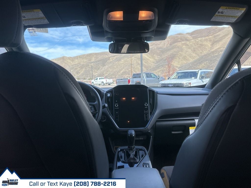 3.70 Axle Ratio, 4-Wheel Disc Brakes, 6 Speakers, ABS brakes, Air Conditioning, All-Weather Floor Liners, Alloy wheels, AM/FM radio: SiriusXM, Anti-whiplash front head restraints, Auto High-beam Headlights, Automatic temperature control, Brake assist, Bumpers: body-color, Driver door bin, Driver vanity mirror, Dual front impact airbags, Dual front side impact airbags, Electronic Stability Control, Emergency communication system: STARLINK Safety and Security (Subscription Required), Exterior Parking Camera Rear, Four wheel independent suspension, Front anti-roll bar, Front Bucket Seats, Front Center Armrest, Front dual zone A/C, Front fog lights, Front reading lights, Fully automatic headlights, Heated door mirrors, Heated Front Bucket Seats, Heated front seats, Illuminated entry, Knee airbag, Leather Shift Knob, Low tire pressure warning, Occupant sensing airbag, Outside temperature display, Overhead airbag, Overhead console, Panic alarm, Passenger door bin, Passenger vanity mirror, Power door mirrors, Power steering, Power windows, Radio data system, Radio: Subaru STARLINK 11.6 Multimedia Plus Sys, Rear anti-roll bar, Rear seat center armrest, Rear window defroster, Rear window wiper, Remote keyless entry, Security system, Speed control, Speed-sensing steering, Split folding rear seat, Spoiler, Sport Cloth Upholstery, Standard Model, STARLINK/Apple CarPlay/Android Auto, Steering wheel mounted audio controls, Tachometer, Telescoping steering wheel, Tilt steering wheel, Traction control, Trip computer, Turn signal indicator mirrors, Variably intermittent wipers, Wheels: 18 x 7.0J Dark Gray Aluminum Alloy.