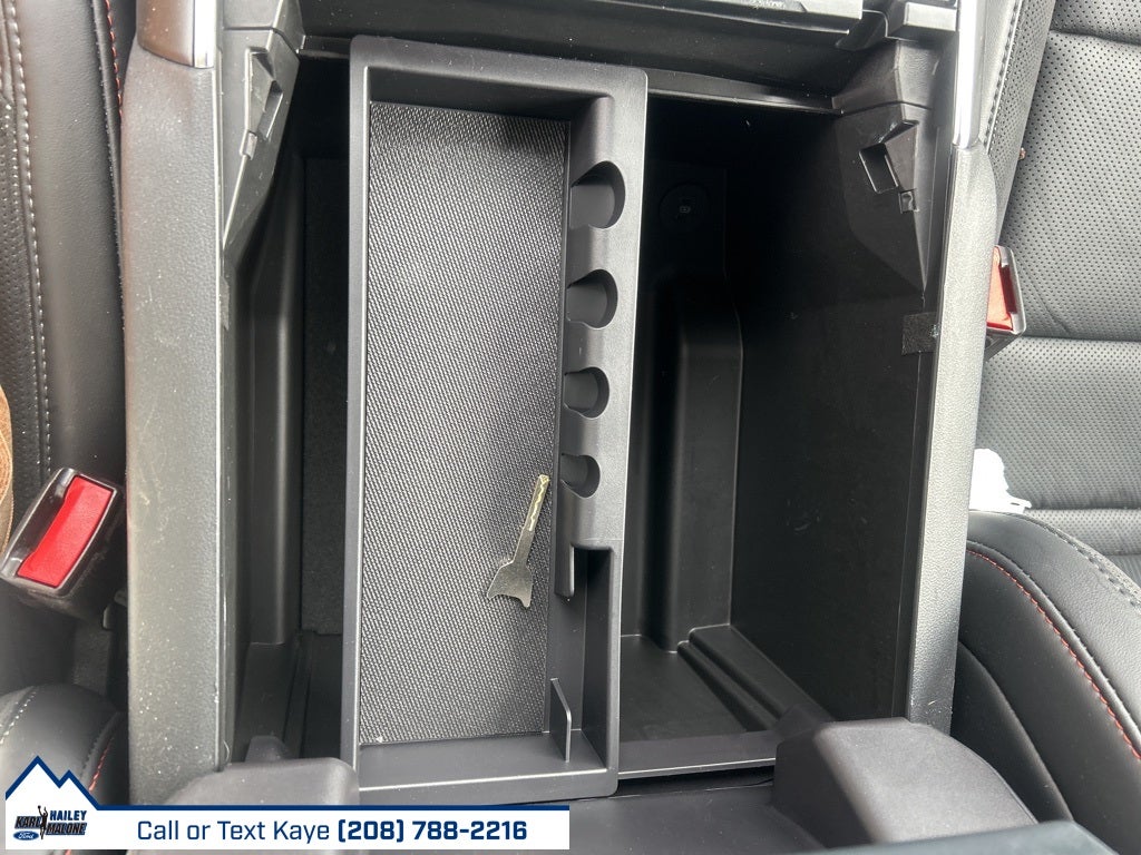4WD, 14 Speakers, 17 Cast Aluminum Wheels, 4-Wheel Disc Brakes, ABS brakes, Adjustable pedals, Air Conditioning, Alloy wheels, AM/FM radio: SiriusXM with 360L, Auto High-beam Headlights, Auto tilt-away steering wheel, Auto-dimming door mirrors, Auto-dimming Rear-View mirror, Automatic temperature control, Brake assist, Bumpers: body-color, Compass, Delay-off headlights, Driver door bin, Driver vanity mirror, Dual front impact airbags, Dual front side impact airbags, Electronic Locking w/4.10 Axle Ratio, Electronic Stability Control, Emergency communication system: SYNC 4 911 Assist, Equipment Group 801A Standard, Front anti-roll bar, Front Bucket Seats, Front Center Armrest, Front dual zone A/C, Front fog lights, Front License Plate Bracket, Front reading lights, Front wheel independent suspension, Fully automatic headlights, Garage door transmitter, Heads-Up Display, Heated door mirrors, Heated front seats, Heated rear seats, Heated steering wheel, Illuminated entry, Internet access capable: FordPass Connect 5G, Lane Departure Warning System, Leather steering wheel, Leather Trimmed Seats, Low tire pressure warning, Memory seat, Navigation system: Connected Navigation, Occupant sensing airbag, Outside temperature display, Overhead airbag, Overhead console, Panic alarm, Passenger door bin, Passenger vanity mirror, Pedal memory, Power door mirrors, Power driver seat, Power passenger seat, Power steering, Power windows, Radio data system, Radio: B&O Unleashed Sound System by Bang & Olufsen, Rain sensing wipers, Rear reading lights, Rear step bumper, Rear window defroster, Remote keyless entry, Security system, Speed control, Speed-sensing steering, Split folding rear seat, Steering wheel memory, Steering wheel mounted audio controls, SYNC 4 w/Enhanced Voice Recognition, Tachometer, Telescoping steering wheel, Tilt steering wheel, Traction control, Trip computer, Turn signal indicator mirrors, Twin Panel Moonroof, Variably intermittent wipers, Ventilated front seats, 4WD.