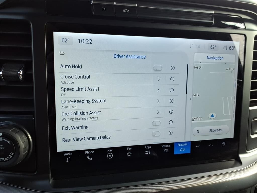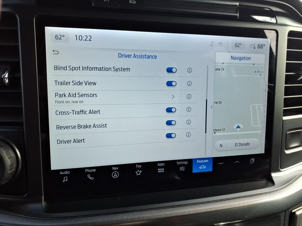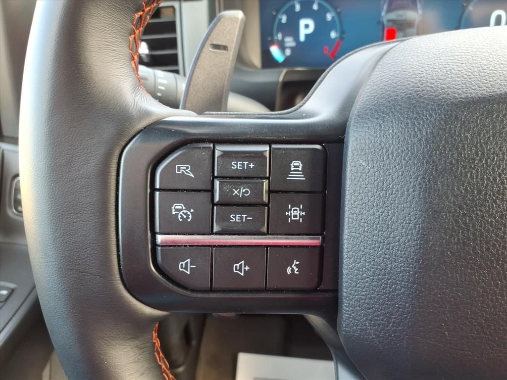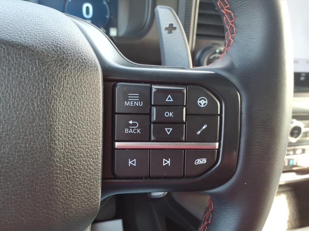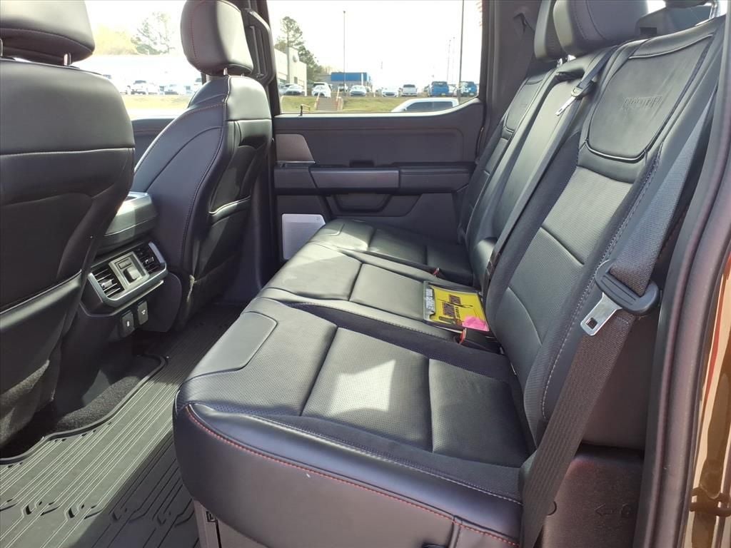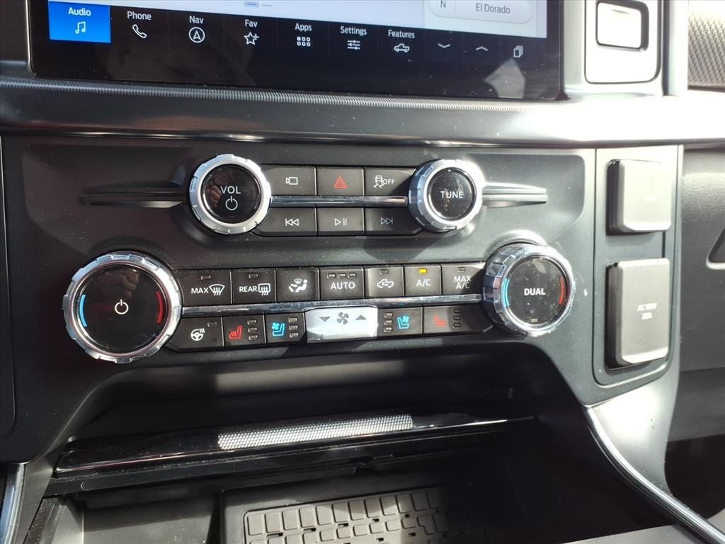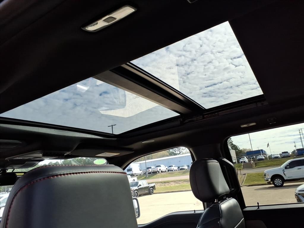 14 Speakers, 17 Cast Aluminum Wheels, 4-Wheel Disc Brakes, ABS brakes, Adjustable pedals, Air Conditioning, Alloy wheels, AM/FM radio: SiriusXM with 360L, Auto High-beam Headlights, Auto tilt-away steering wheel, Auto-dimming door mirrors, Auto-dimming Rear-View mirror, Automatic temperature control, Brake assist, Bumpers: body-color, Compass, Delay-off headlights, Driver door bin, Driver vanity mirror, Dual front impact airbags, Dual front side impact airbags, Electronic Locking w/4.10 Axle Ratio, Electronic Stability Control, Emergency communication system: SYNC 4 911 Assist, Equipment Group 801A Standard, Front anti-roll bar, Front Bucket Seats, Front Center Armrest, Front dual zone A/C, Front fog lights, Front reading lights, Front wheel independent suspension, Fully automatic headlights, Garage door transmitter, Heads-Up Display, Heated door mirrors, Heated front seats, Heated rear seats, Heated steering wheel, Illuminated entry, Internet access capable: FordPass Connect 5G, Lane Departure Warning System, Leather steering wheel, Leather Trimmed Seats, Low tire pressure warning, Memory seat, Navigation system: Connected Navigation, Occupant sensing airbag, Outside temperature display, Overhead airbag, Overhead console, Panic alarm, Passenger door bin, Passenger vanity mirror, Pedal memory, Power door mirrors, Power driver seat, Power passenger seat, Power steering, Power windows, Radio data system, Radio: B&O Unleashed Sound System by Bang & Olufsen, Rain sensing wipers, Rear reading lights, Rear step bumper, Rear window defroster, Remote keyless entry, Security system, Speed control, Speed-sensing steering, Split folding rear seat, Steering wheel memory, Steering wheel mounted audio controls, SYNC 4 w/Enhanced Voice Recognition, Tachometer, Telescoping steering wheel, Tilt steering wheel, Tough Bed Spray-In Bedliner, Traction control, Trip computer, Turn signal indicator mirrors, Twin Panel Moonroof, Variably intermittent wipers, Ventilated front seats,