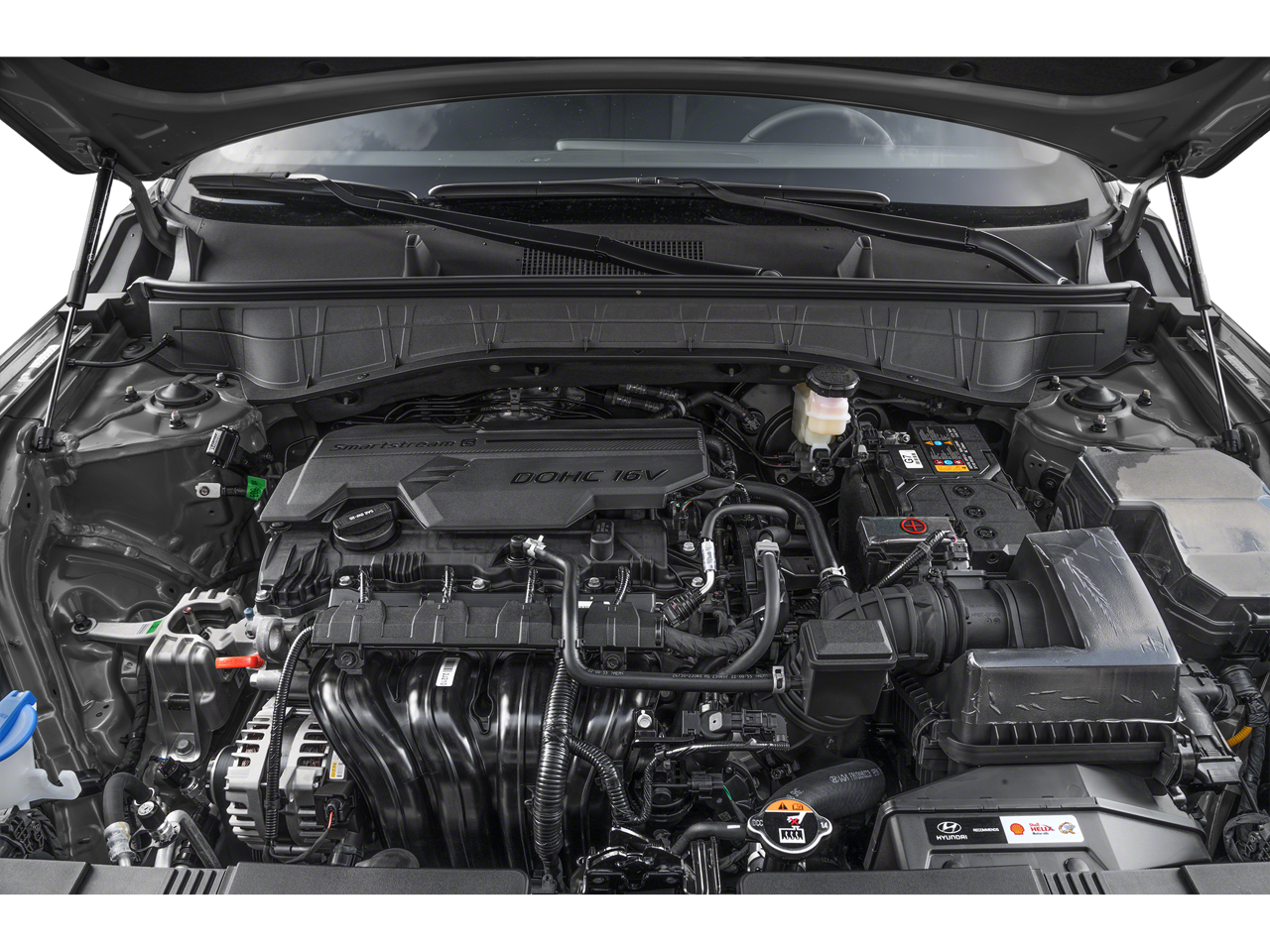 4-Wheel Disc Brakes, 6 Speakers, ABS brakes, Air Conditioning, Alloy wheels, AM/FM radio: SiriusXM, Apple CarPlay & Android Auto, Auto High-beam Headlights, Automatic temperature control, Brake assist, Bumpers: body-color, Cloth Seat Trim, Delay-off headlights, Driver door bin, Driver vanity mirror, Dual front impact airbags, Dual front side impact airbags, Electronic Stability Control, Emergency communication system: Bluelink+, Exterior Parking Camera Rear, Four wheel independent suspension, Front anti-roll bar, Front Bucket Seats, Front Center Armrest, Front dual zone A/C, Front reading lights, Fully automatic headlights, Heated door mirrors, Illuminated entry, Leather steering wheel, Low tire pressure warning, Occupant sensing airbag, Option Group 01, Outside temperature display, Overhead airbag, Panic alarm, Passenger door bin, Passenger vanity mirror, Power door mirrors, Power driver seat, Power steering, Power windows, Radio: AM/FM/HD Radio/SiriusXM Audio System, Rear anti-roll bar, Rear seat center armrest, Rear window defroster, Rear window wiper, Remote keyless entry, Security system, Speed control, Speed-sensing steering, Split folding rear seat, Spoiler, Steering wheel mounted audio controls, Tachometer, Telescoping steering wheel, Tilt steering wheel, Traction control, Trip computer, Turn signal indicator mirrors, Variably intermittent wipers, Wheels: 18 x 7.0J Glossy Black Alloy.