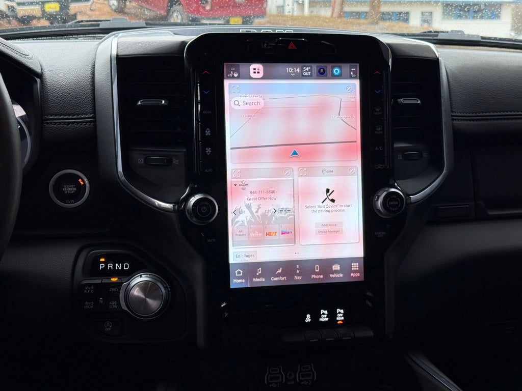 10 Speakers, 3 Rear Seat Head Restraints, 3.55 Rear Axle Ratio, 4 Way Front Headrests, 4-Wheel Disc Brakes, 4G LTE Wi-Fi Hot Spot, ABS brakes, Air Conditioning, Alloy wheels, AM/FM radio: SiriusXM with 360L, Apple CarPlay, Apple CarPlay/Android Auto, Audio memory, Auto High-beam Headlights, Auto Power-Folding Mirrors, Auto-dimming door mirrors, Auto-Dimming Exterior Driver Mirror, Auto-dimming Rear-View mirror, Automatic temperature control, Brake assist, Bumpers: chrome, Chrome Exterior Mirrors, Compass, Connected Travel & Traffic Services, Connectivity - US/Canada, Convex Wide-Angle Exterior Mirror Insert, Delay-off headlights, Driver door bin, Driver Seat Memory, Driver vanity mirror, Dual front impact airbags, Dual front side impact airbags, Electronic Stability Control, Exterior Mirrors Courtesy Lamps, Exterior Mirrors w/Heating Element, Exterior Mirrors w/Memory, Exterior Mirrors w/Supplemental Signals, Front anti-roll bar, Front Center Armrest w/Storage, Front dual zone A/C, Front fog lights, Front License Plate Bracket, Front reading lights, Front Seat Back Map Pockets, Front wheel independent suspension, Fully automatic headlights, Garage door transmitter, Google Android Auto, GPS Antenna Input, GPS Navigation, HD Radio, Heated door mirrors, Heated Front Seats, Heated front seats, Heated rear seats, Heated Steering Wheel, Heated steering wheel, Illuminated entry, Integrated Voice Command w/Bluetooth®, Laramie Level 1 Equipment Group, Leather steering wheel, Leather Trim 40/20/40 Bench Seat, Low tire pressure warning, Manufacturer's Statement of Origin, Memory seat, Navigation System, Occupant sensing airbag, Outside temperature display, Overhead airbag, Overhead console, Panic alarm, ParkView Rear Back-Up Camera, Passenger door bin, Passenger vanity mirror, Power 2-Way Driver Lumbar Adjust, Power 2-Way Passenger Lumbar Adjust, Power Adjust 8-Way Front Passenger Seat, Power door mirrors, Power driver seat, Power passenger seat, Power steering, Power windows, Quick Order Package 21H Laramie, Radio data system, Radio: Uconnect 5 Nav w/12.0 Display, Rain Sensitive Windshield Wipers, RAM Grille Badge - Chrome, Rear anti-roll bar, Rear reading lights, Rear seat center armrest, Rear step bumper, Remote keyless entry, Remote Tailgate Release, Security system, SiriusXM w/360L, Speed control, Split folding rear seat, Steering wheel mounted audio controls, Tachometer, Telescoping steering wheel, Tilt steering wheel, Traction control, Trip computer, Turn signal indicator mirrors, USB Host Flip, Variably intermittent wipers, Ventilated Front Seats, Ventilated front seats, Voltmeter, Wheels: 20 x 9 Premium Paint/Polish.