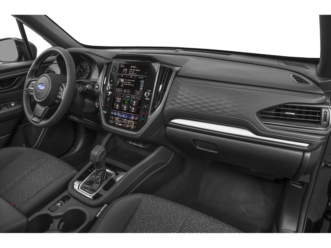 4-Wheel Disc Brakes, 6 Speakers, ABS brakes, Air Conditioning, Alloy wheels, AM/FM radio: SiriusXM with 360L, Anti-whiplash front head restraints, Auto High-beam Headlights, Automatic Emergency Steering, Automatic temperature control, Blind-Spot Detection (BSD)/RCTA System, Brake assist, Bumpers: body-color, Driver door bin, Driver vanity mirror, Dual front impact airbags, Dual front side impact airbags, Electronic Stability Control, Emergency communication system: MySubaru Safety (3-year free trial), Exterior Parking Camera Rear, Four wheel independent suspension, Front anti-roll bar, Front Bucket Seats, Front Center Armrest, Front dual zone A/C, Front fog lights, Front reading lights, Fully automatic headlights, Heated door mirrors, Heated Front Bucket Seats, Heated front seats, Illuminated entry, Knee airbag, Leather steering wheel, Low tire pressure warning, Occupant sensing airbag, Outside temperature display, Overhead airbag, Overhead console, Panic alarm, Passenger door bin, Passenger vanity mirror, Power door mirrors, Power driver seat, Power moonroof: Panoramic, Power Rear Gate, Power Rear Gate & Blind Spot Detection w/RCTA, Power steering, Power windows, Premium Textured Cloth Upholstery, Radio data system, Radio: Subaru 11.6 Multimedia Plus System, Rear anti-roll bar, Rear seat center armrest, Rear window defroster, Rear window wiper, Remote keyless entry, Security system, Speed control, Speed-sensing steering, Split folding rear seat, Spoiler, Steering wheel mounted audio controls, Tachometer, Telescoping steering wheel, Tilt steering wheel, Traction control, Trip computer, Variably intermittent wipers, Wheels: 17 x 7.0 J Dark Metallic Aluminum-Alloy.