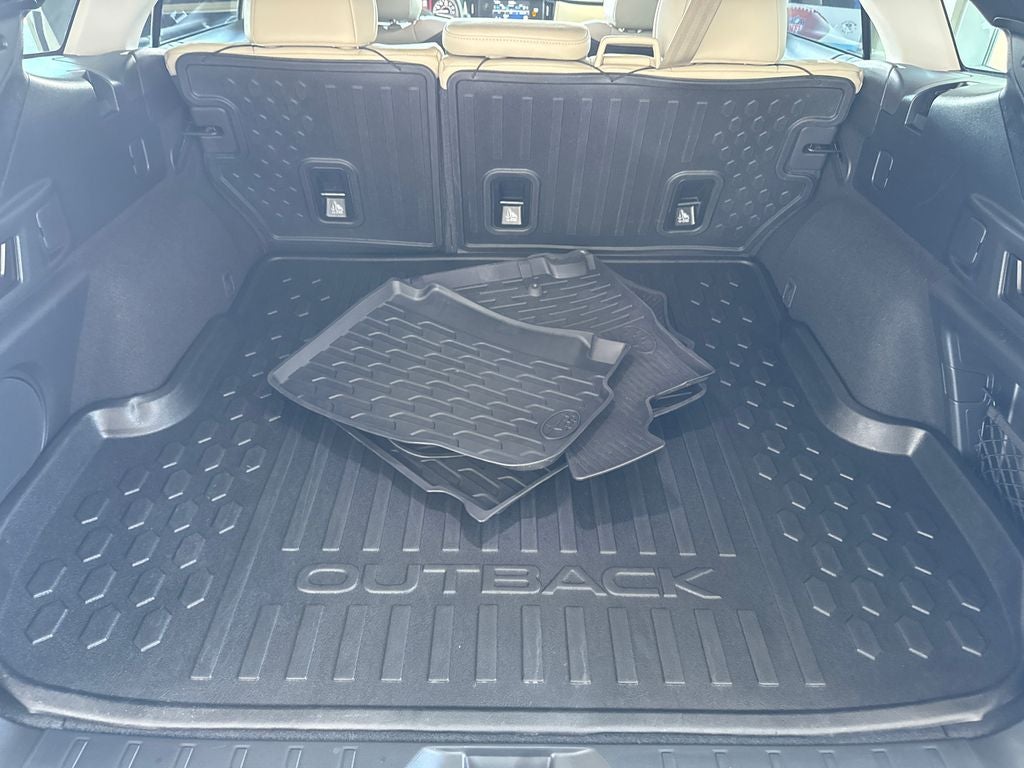 12 Speakers, 4-Wheel Disc Brakes, ABS brakes, Air Conditioning, All-Weather Floor Liners, Alloy wheels, AM/FM radio: SiriusXM with 360L, Apple CarPlay & Android Auto, Auto High-beam Headlights, Auto-dimming Rear-View mirror, Automatic temperature control, Brake assist, Bumpers: body-color, Compass, Driver door bin, Driver vanity mirror, Dual front impact airbags, Dual front side impact airbags, Electronic Stability Control, Emergency communication system: MySubaru Safety (3-year free trial), Exterior Parking Camera Rear, Four wheel independent suspension, Front anti-roll bar, Front Bucket Seats, Front Center Armrest w/Storage, Front dual zone A/C, Front fog lights, Front reading lights, Fully automatic headlights, Garage door transmitter: HomeLink, harman/kardon® Speakers, Heated door mirrors, Heated Front Bucket Seats, Heated front seats, Heated rear seats, Heated steering wheel, HVAC memory, Illuminated entry, Knee airbag, Leather Shift Knob, Leather steering wheel, LED Upgrade, Low tire pressure warning, Memory seat, Navigation system: TomTom Navigation w/what3words, Occupant sensing airbag, Outside temperature display, Overhead airbag, Overhead console, Panic alarm, Passenger door bin, Passenger vanity mirror, Perforated Leather-Trimmed Upholstery, Power door mirrors, Power driver seat, Power Liftgate, Power moonroof, Power passenger seat, Power steering, Power windows, Radio: Subaru 11.6 Multimedia System w/Navigation, Rear anti-roll bar, Rear Bumper Cover, Rear Seat Back Protector, Rear seat center armrest, Rear window defroster, Rear window wiper, Remote keyless entry, Roof rack, Security system, Speed control, Speed-sensing steering, Splash Guards, Split folding rear seat, Spoiler, Standard Model, Steering wheel mounted audio controls, Tachometer, Telescoping steering wheel, Tilt steering wheel, Traction control, Trip computer, Turn signal indicator mirrors, Variably intermittent wipers, Wheels: 18 x 7J Black Aluminum-Alloy.